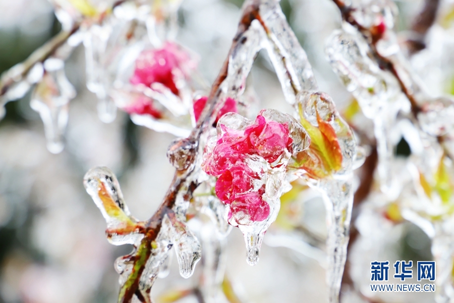 樹枝上、綠葉上、花卉上......各式冰掛,風姿百態。新華網發(鄺健華 攝)