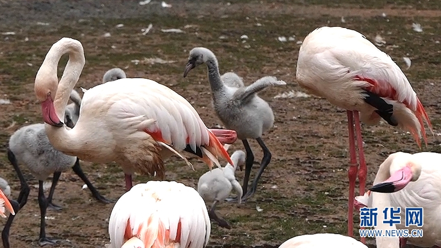 喜愛群居的火烈鳥在享受“日光浴”。新華網發(佘建新 攝)
