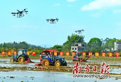 水稻聯合收割機、插秧機、無人機、輪帶式拖拉機、旋耕機等多種農業機械化設備輪番展示……近日,在河源春季農業生產暨農機鬧春耕現場會上,各類農業機械化設備大顯身手,農業機械化為農業高質量發展插上一雙“翅膀”。