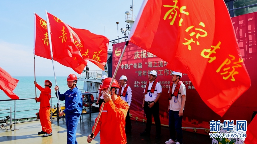 近日,中鐵廣州工程局集團團委在廣東惠來原油碼頭的一艘施工船舶上開展“海上流動圖書室捐贈計劃”暨“青年創新工作室”揭牌儀式活動。新華網發(郝留建 攝)