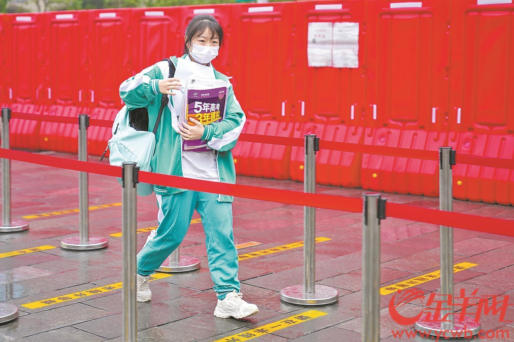 早上7時左右,在廣州市第一一三中學校門口,同學們正間隔一米排隊遞交“家校兩點一線”承諾書,憑穗康碼綠碼、本人及同居住家屬48小時核酸檢測陰性證明返校。