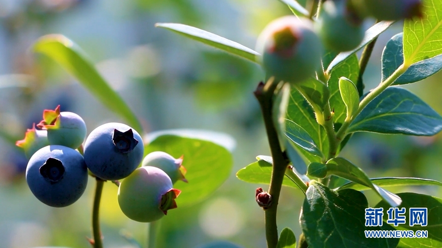 初夏,陽光和微風喚醒了果蔬,藍莓進入成熟季。新華網發(羅素玲 攝)