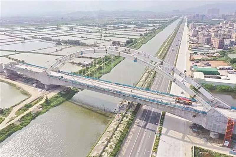 5月21日16時許,由中鐵北京工程局承建的汕汕高鐵項目雷嶺河特大橋跨鹽嶺河160米連續梁鋼管拱(見圖)全部完成,為后續架梁及無砟軌道施工奠定了堅實的基礎。