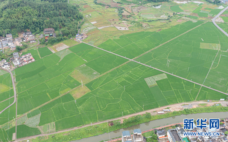 走進扶溪鎮紫嶺村水稻種植基地,一整片綠油油的禾田映入眼簾。新華網發(邱其聰 攝)
