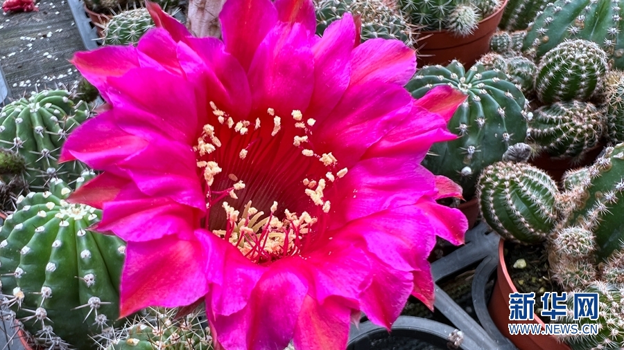 開花的仙人球。新華網發(羅素玲 攝)
