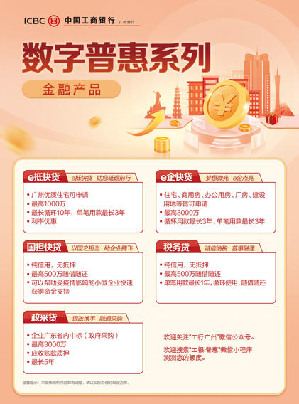 工商銀行廣州分行運用數據和技術,構建數字普惠新模式,鍛造工商銀行數字普惠新品質。圍繞“精準、流暢、聰明”三大品質,工商銀行構筑信用類經營快貸、抵質押類網貸通、交易類數字供應鏈三大產品線,在保持小額分散數據貸特色的同時,針對不同成長周期小微客戶的需求不斷提高融資便利度,解決產業鏈中普惠客戶難題,惠及更多小微企業。