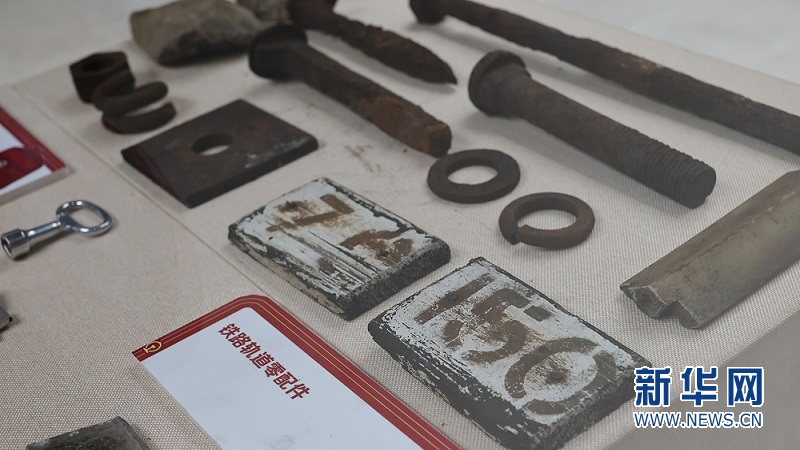 展出的鐵路軌道零配件。新華網發