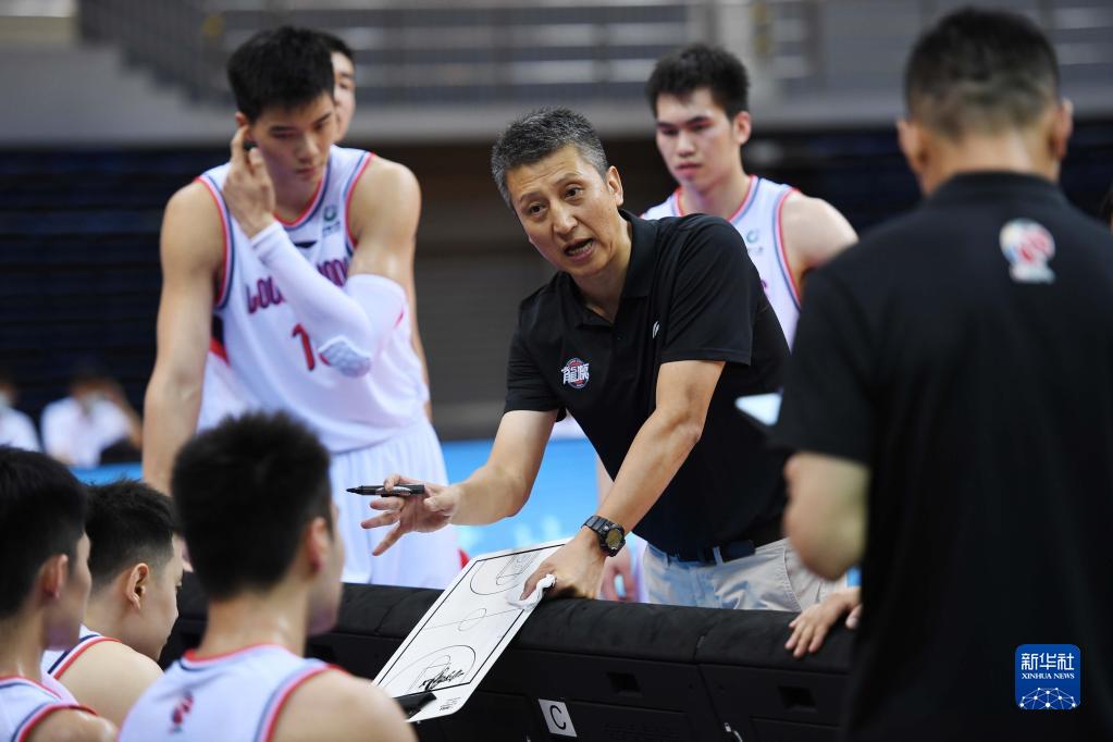 7月15日,時代中國廣州隊主教練郭士強(中)在比賽間隙指導球員。新華社記者 李紫恒 攝