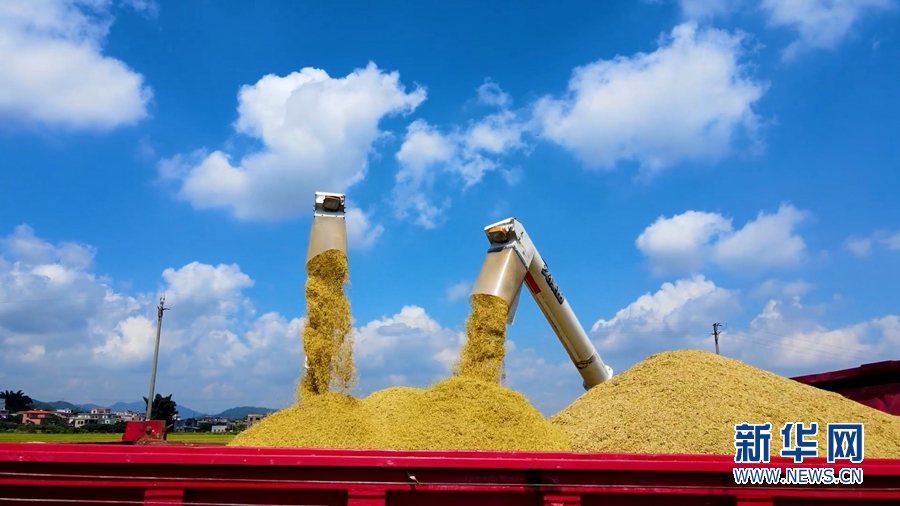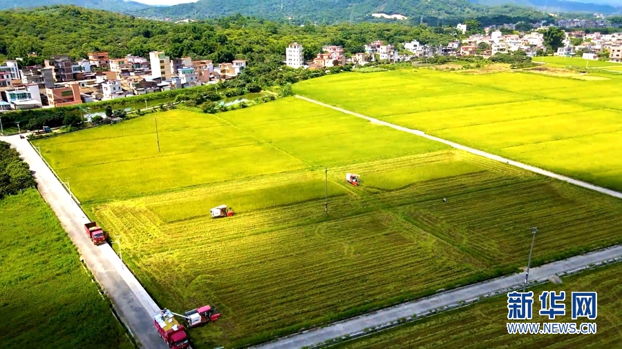 近日,廣州市從化區鰲頭鎮中塘村迎來早稻豐收。新華網發(胡東和 攝)