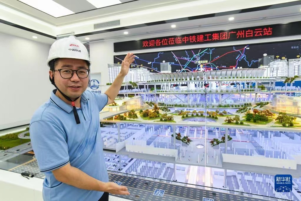 8月4日,廣州白云火車站項目設計總負責人黃波介紹,站房屋頂采取可伸縮的生態智能設計理念,春運時休閑景觀廣場上方將伸出大型頂棚,變成能容納三倍旅客數量的“擴展候車室”。新華社記者 劉大偉 攝