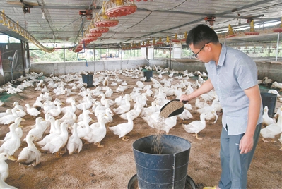 2020年,在外打工的連平縣三角鎮新村農民朱連階回到老家,在三角動物衛生監督分所所長嚴少密的引薦下,試養了2000多羽廣西櫻桃谷白鴨,養殖不到2個月,首批白鴨全部賣出,純利潤就有1萬多元。嘗到甜頭的朱連階,開始規?;B殖白鴨。