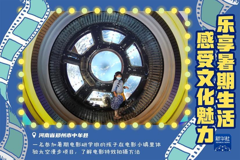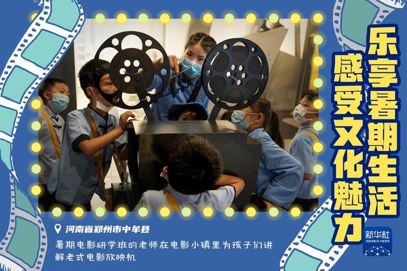 暑假期間,位于河南省鄭州市中牟縣的電影小鎮開展了以電影文化藝術為主題的研學活動。孩子們在老師的帶領下參觀游覽,參與表演課程,探索電影起源和電影制作過程,了解電影文化,沉浸式體驗電影工業的臺前幕后,豐富暑期生活。新華社發 陳聰穎 李安 編制