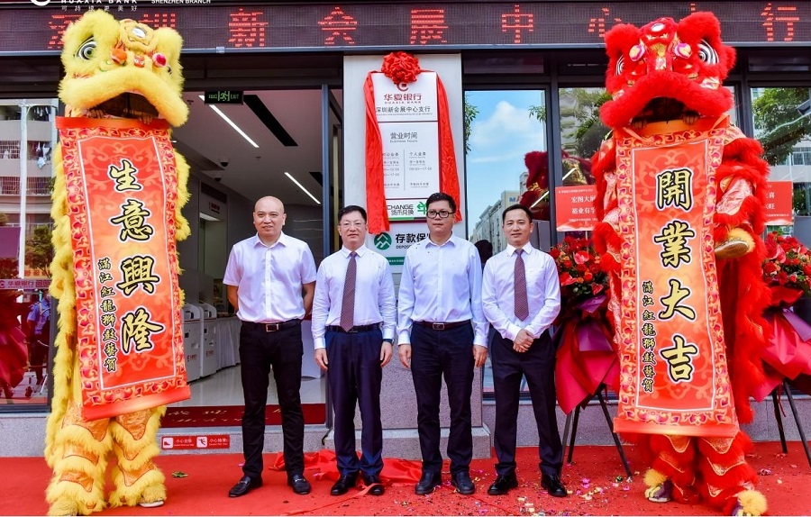 8月16日,華夏銀行深圳新會展中心支行開業。華夏銀行總行黨委委員、營銷總監,深圳分行黨委書記、行長陳傳龍,寶安區財政局黨組書記、局長李燁華,福海街道黨工委副書記、人大工委主任黃萬鈞等為其揭牌。