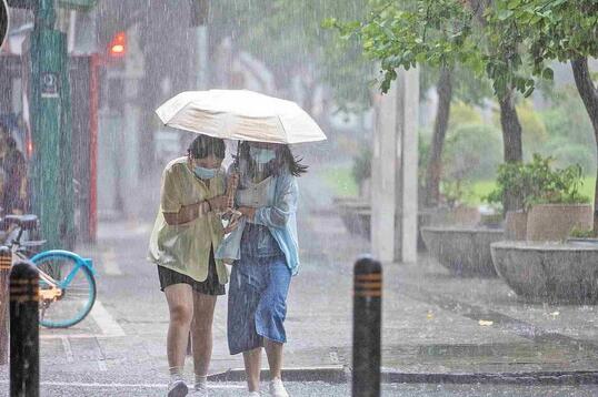 8月21日下午,廣州突降暴雨,多區發布暴雨預警信號。在越秀區環市東路,心急的市民在暴雨中艱難前行。(南方日報記者 金鏑 攝)