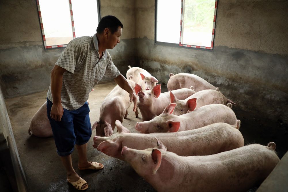 2022年6月17日,江西省贛州市興國縣華坑村村民賴德源在豬圈工作。 新華社記者 李思佳攝