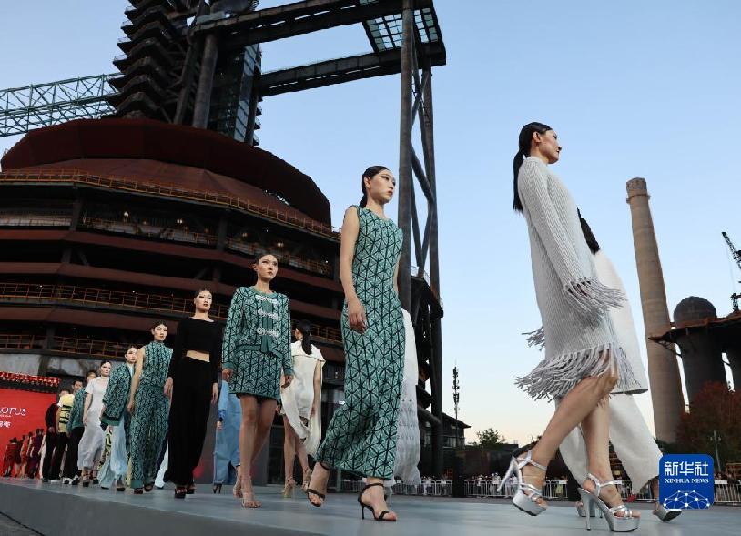 9月1日,模特在北京首鋼園展示知名時裝設計師房瑩設計的時裝。