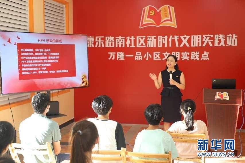 萬隆一品小區文明實踐點黨員干部志愿者向居民講授健康知識。新華網發 (吳昊天 攝)