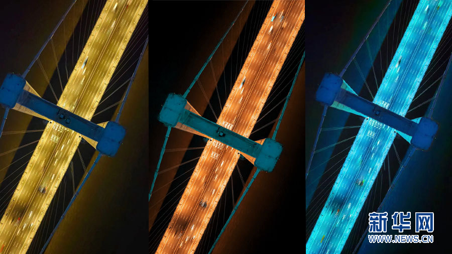 南沙大橋夜景拼接圖。新華網發(黃巧珠 攝)