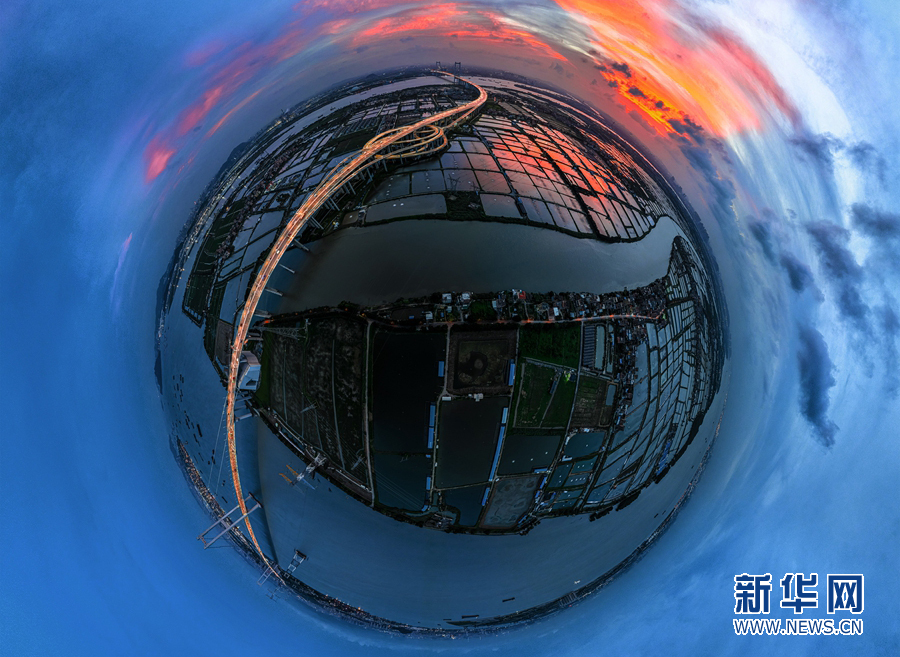 航拍南沙大橋“小行星”視角全景圖。新華網發(黃巧珠 攝)