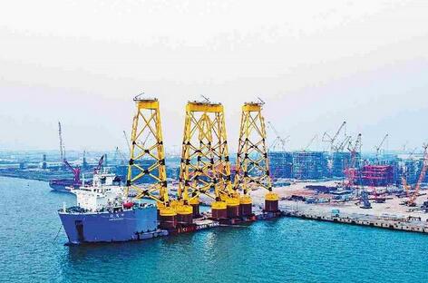 9月18日,黃茅海東岸,隨著最后一船高達93米的導管架在碼頭交付起航,在珠海建造的34套全球最深吸力筒式海上風電項目導管架全部交付。