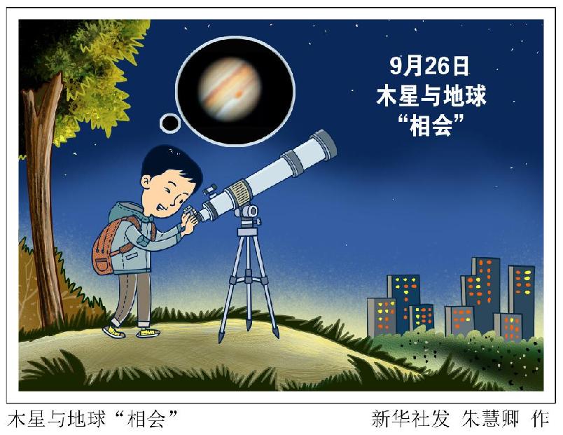 太陽系中體積最大的行星木星,將于9月26日運行至本輪會合周期距離地球最近的位置。中科院紫金山天文臺科普主管王科超介紹,此次木星與地球的“相會”大約相距3.95個天文單位,約合5.91億千米。