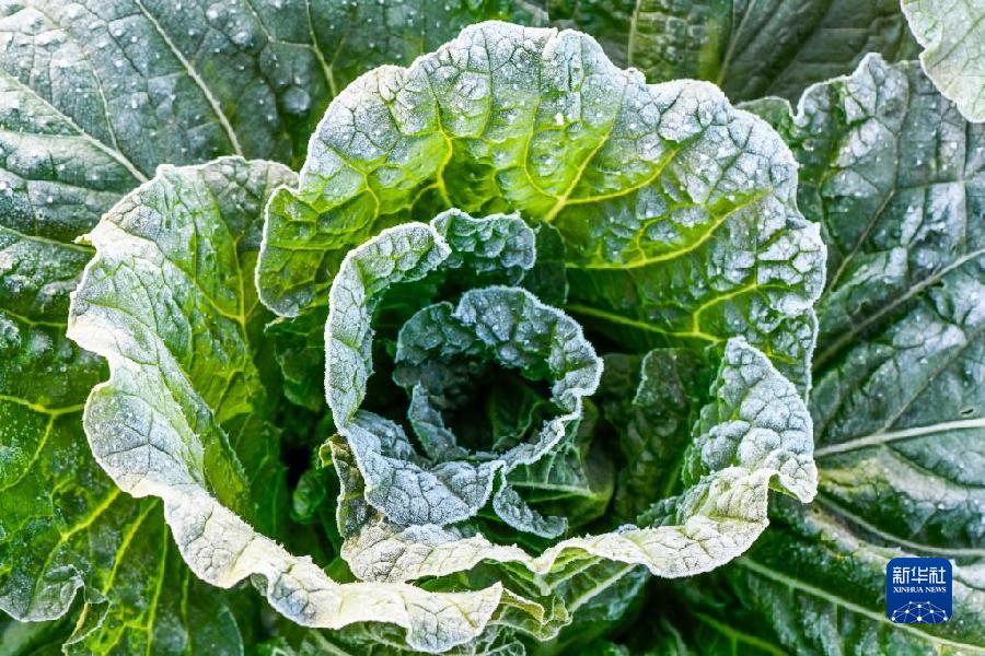 10月17日,河北省玉田縣亮甲店鎮田間的白菜結霜。