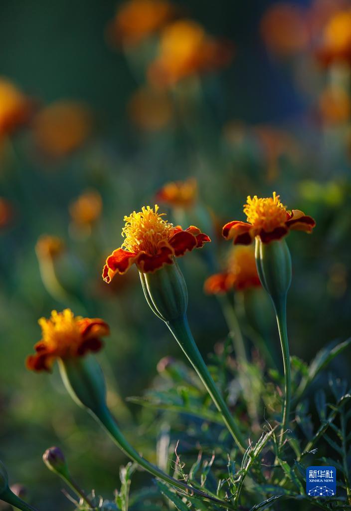 這是10月15日在貴州省黔東南苗族侗族自治州丹寨縣興仁鎮拍攝的萬壽菊。
