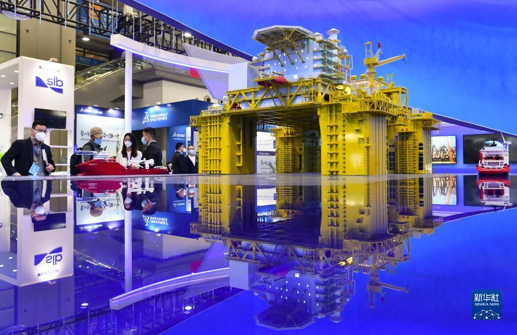 11月24日,觀眾在海博會現場觀看中國海油“深海一號”模型。新華社記者 梁旭 攝