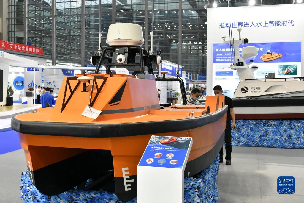 11月24日,觀眾在海博會現場了解云洲無人船。新華社記者 梁旭 攝