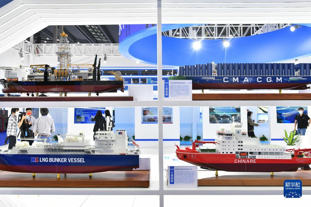 11月24日,觀眾在海博會現場觀看中國船舶集團展出的船只模型。新華社記者 梁旭 攝