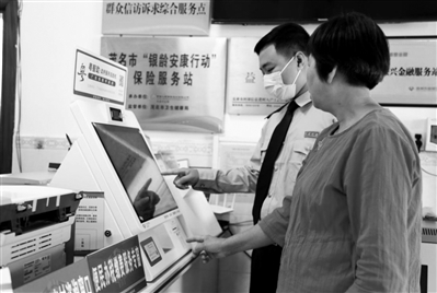 工作人員指導村民在 “粵智助”上繳納社保費。