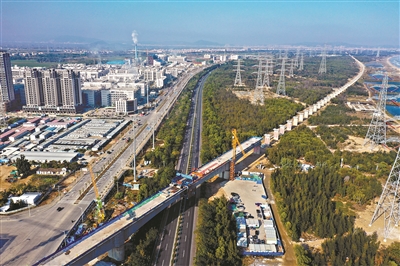 汕汕鐵路潮南跨深汕高速特大橋連續梁合龍。(汕頭市交通局供圖)