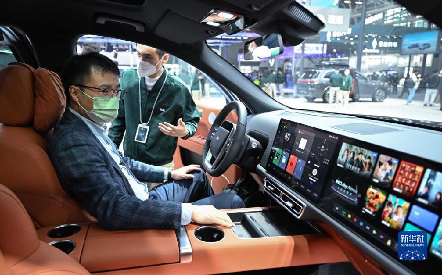 12月30日,在車展的極氪汽車展臺,參觀者觀看SEA浩瀚架構。