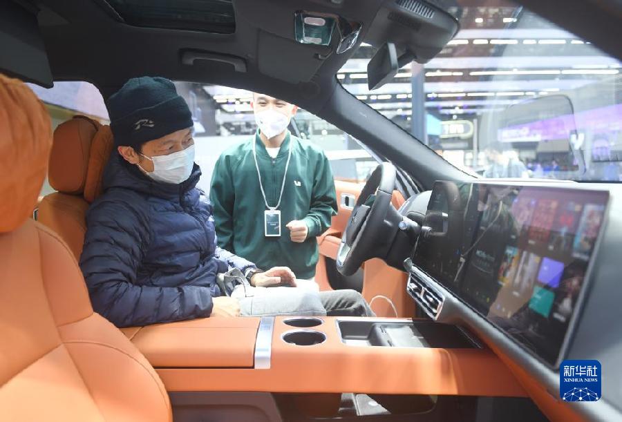 12月30日,觀眾在車展上體驗一款汽車。