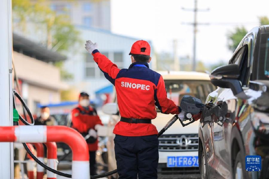 1月3日,山東省青州市一家加油站的工作人員給汽車加油。新華社發(王繼林攝)