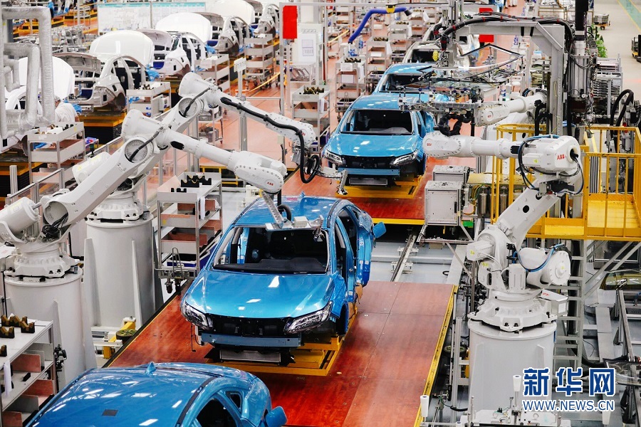 新春伊始,走進廣汽埃安智能生態工廠總裝車間,機械臂飛舞,工人有條不紊地忙碌著,一分鐘即可下線一臺車。