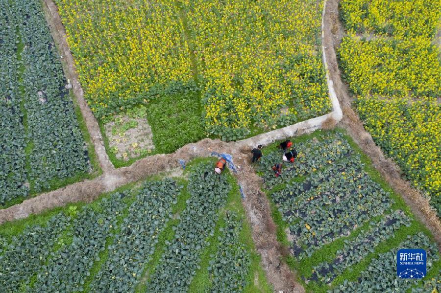 2月17日,貴州省從江縣貫洞鎮的農民在地里勞作(無人機照片)。新華社發(吳德軍 攝)
