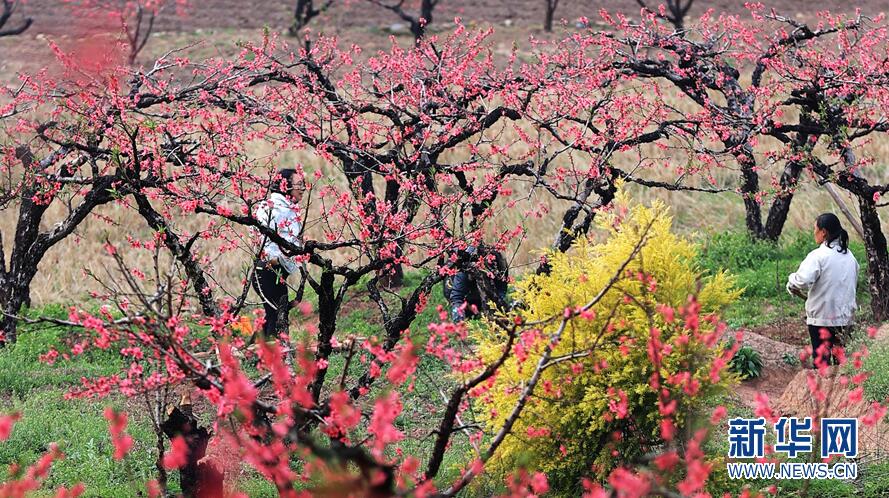 每年桃花盛開時節,游客慕名前來賞花,“春季賞花 秋季品果”已成為當地一張亮麗名片。新華網發(王建橋 攝)