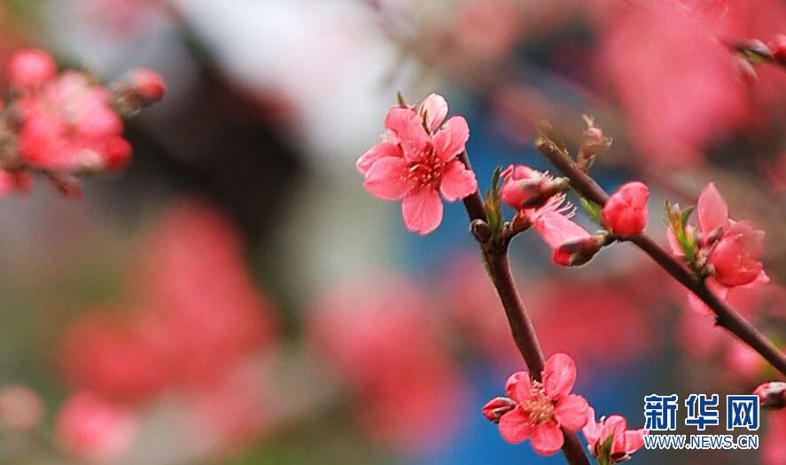 粉紅的花朵在枝頭悄然盛開。新華網發(王建橋 攝)