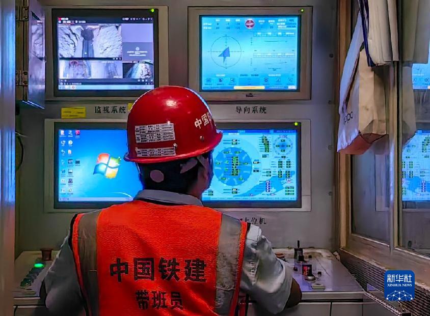 2月25日,中國鐵建大橋局技術員在東莞地鐵1號線水濂山站右線隧道操作“務實號”盾構機。新華社記者 劉大偉 攝