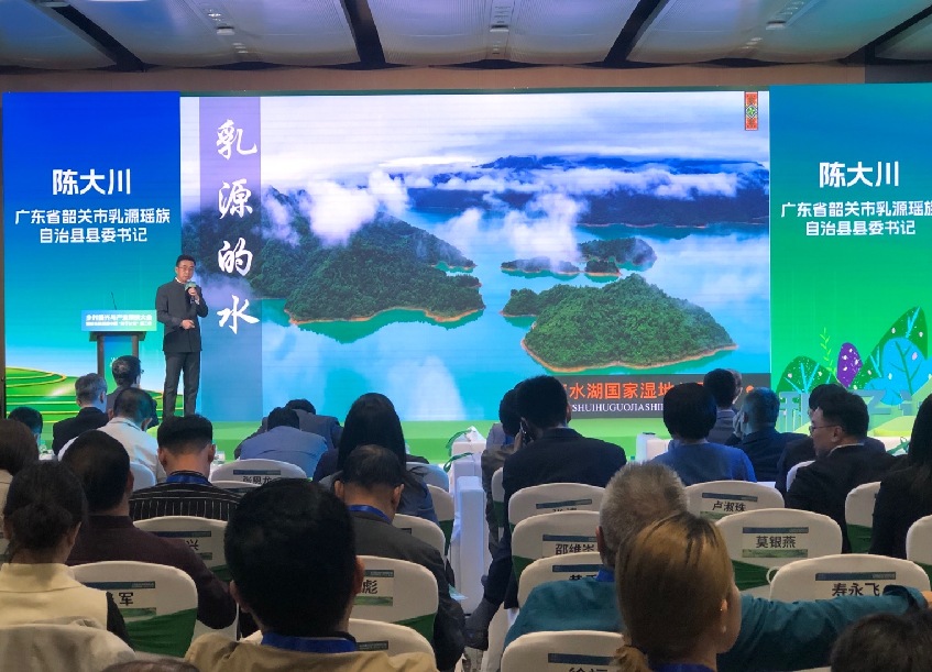 大會現場,廣東省韶關市乳源瑤族自治縣縣委書記陳大川進行招商推介