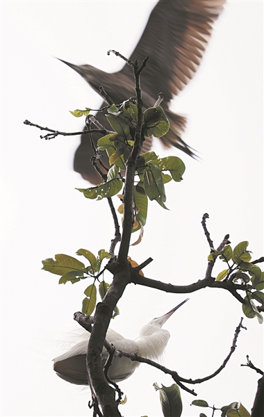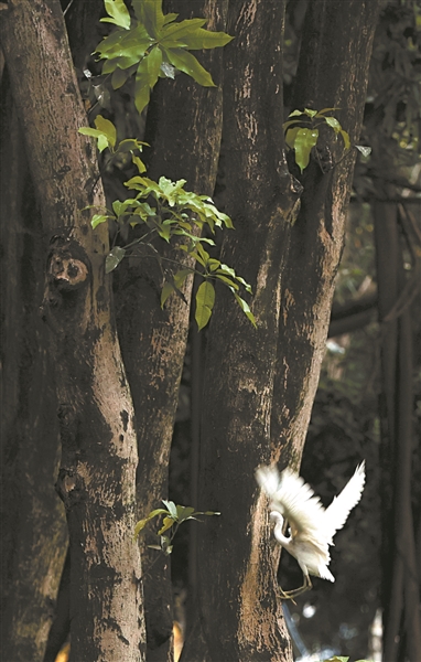 海心沙亞運公園東側的樹林是眾多白鷺的棲息地。近年來,隨著廣州生態環境的變好,市中心白鷺的分布范圍和數量均在增加。