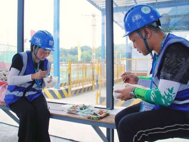 工作忙的時候,趙洪發會主動幫陳曉霞分擔吊裝的活兒,讓妻子先去休息、吃飯,自己則坐在塔吊里繼續加班。陳曉霞吃完飯了,便會拿著飯盒給丈夫送飯,將熱菜熱湯送到丈夫的駕駛室里,等他一口一口地把飯吃完。