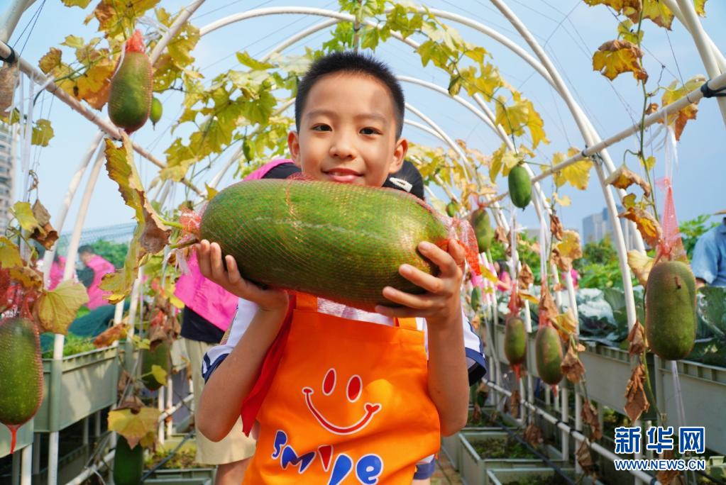 寶玉直實驗小學學生采摘果蔬。新華網發