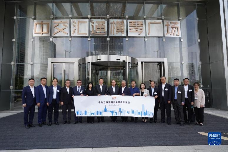 5月22日,考察團在珠海市中交匯通橫琴廣場前合影。新華社發