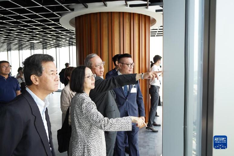 5月22日,考察團在珠海市中交匯通橫琴廣場參觀。新華社發