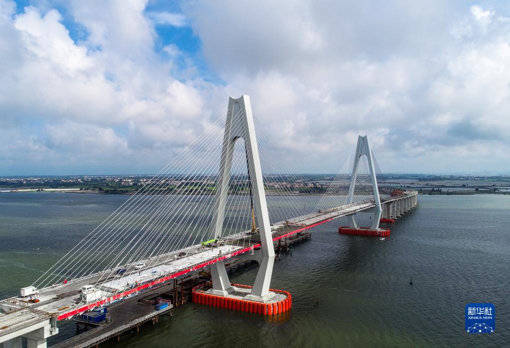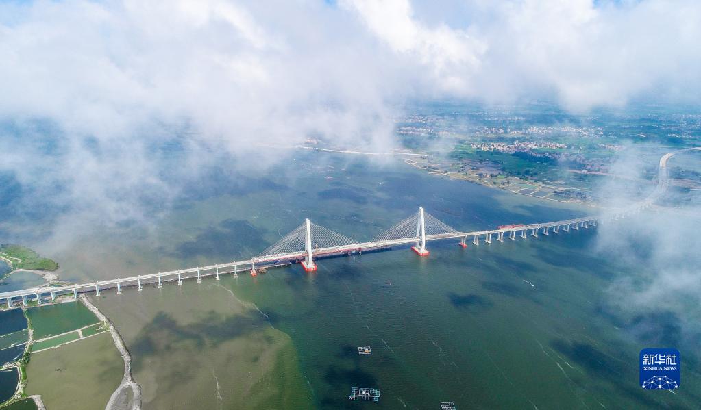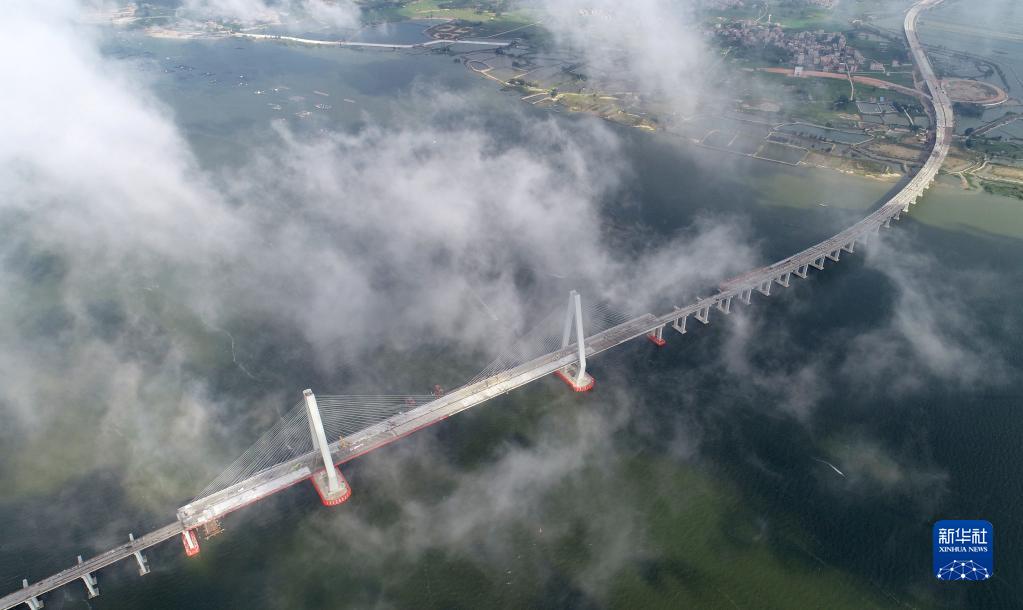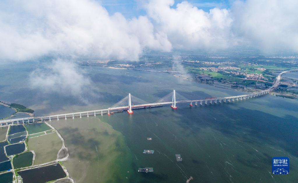 鷺洲大橋猶如長龍臥波,橫跨南三島海域(5月25日攝,無人機照片)。新華社記者 劉大偉 攝