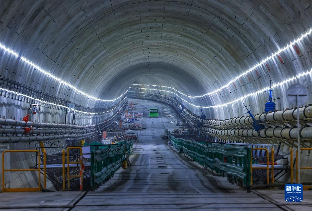 6月8日拍攝的深圳媽灣跨海通道已完成管片拼裝的隧道。新華社發(李小勇攝)