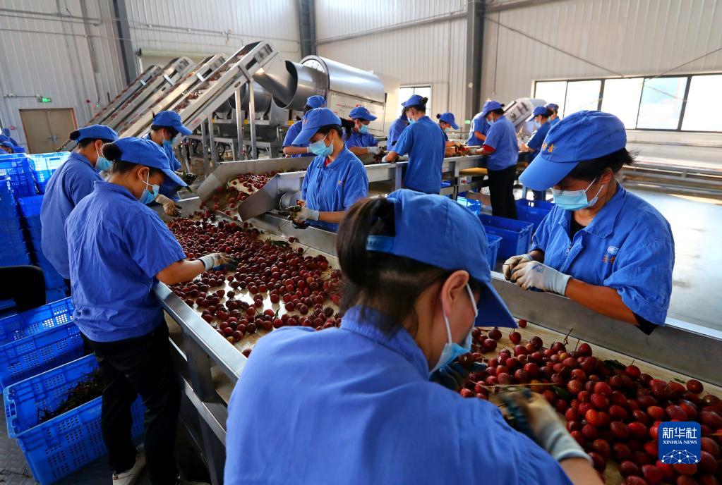6月12日,工人們在廣東茂名的廣藥王老吉廣東荔枝(茂名)產業園生產車間工作。這里的荔枝清汁生產線每天可處理200噸荔枝鮮果。新華社記者 龔兵 攝