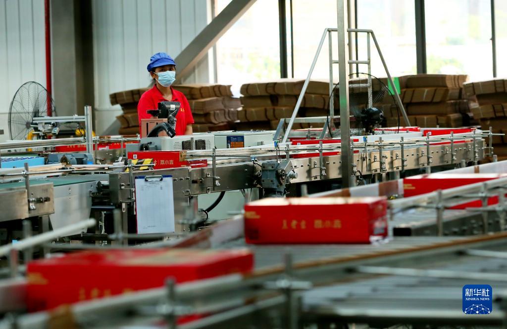 6月12日,工人在廣東茂名的廣藥王老吉廣東荔枝(茂名)產業園生產車間工作。這里的荔枝清汁生產線每天可處理200噸荔枝鮮果。新華社記者 龔兵 攝